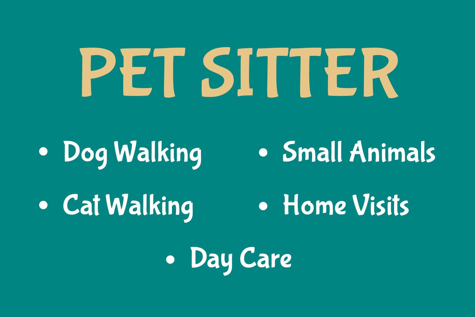 Select from veterinary care, grooming, training, or home visits.
